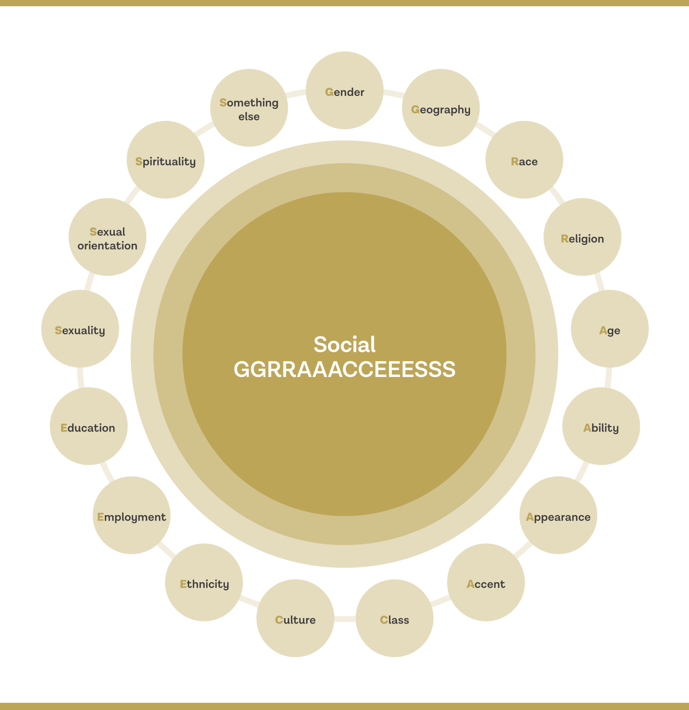 If you have read other sections in this resource hub you may have come across social GGRRAAACCEEESSS already. The social GGRRAAACCEEESSS is a flexible tool that helps us explore the impact of power, discrimination and disadvantage. It can be used in several ways to support supervision practice.